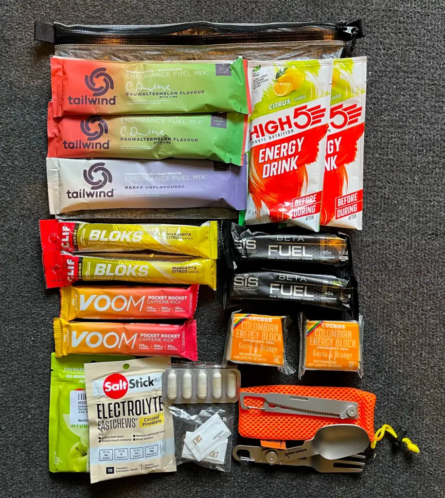 In terms of food, I would be able to supplement the calories I was carrying with meals, snacks etc from shops and cafes/restaurants I would come across every day. Thus, I only carried running calories to ensure I had plenty to ration out over the days.