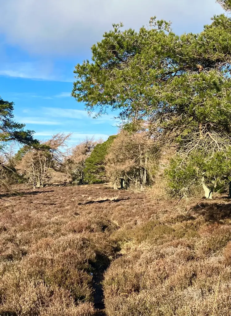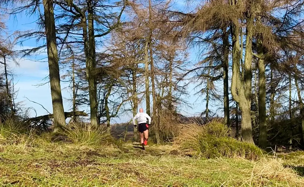 The narrow path winds across the hill through trees and heather and as expected, this was by far the wettest section of the day. However, the semi frozen ground mitigated some of the slipperiness of the muddier parts and it was good running.