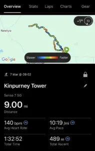 So, I went onto Garmin Explore and plotted the route, finding it to be a nine-mile round trip. Rather than a straight out and back, I added a slightly different leg on the return journey to keep it varied. I expected some very wet and boggy sections and possibly some ice too. In any event, it was going to be proper off-road running on a variety of gradients and surfaces. Great stuff!