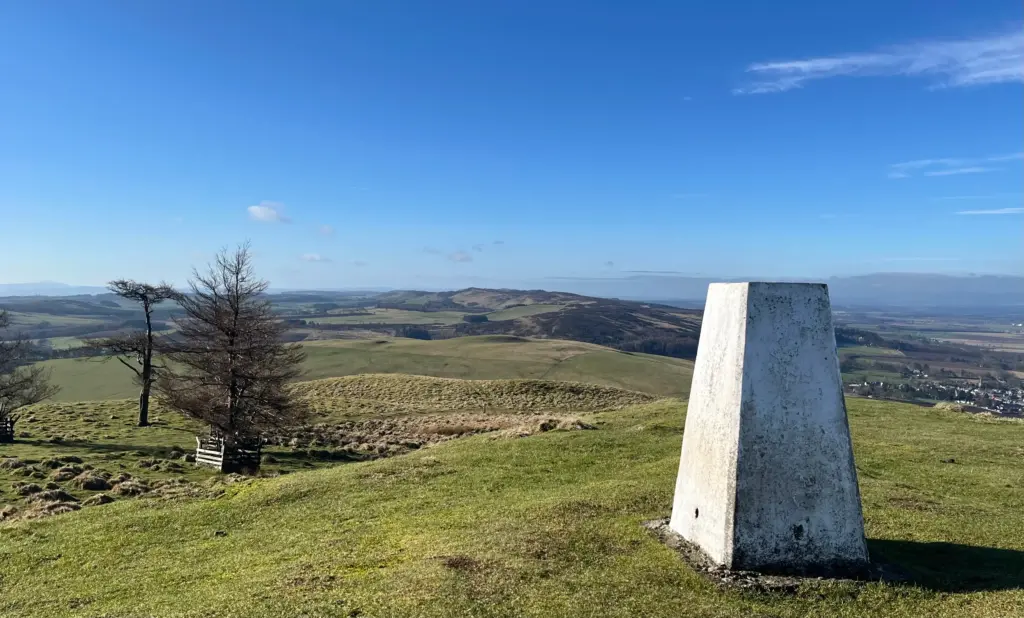 Crossing a fence at the bottom of the fire break, the path moved out onto more open ground and looking left, Kinpurney Hill was now in full view and only about half a mile distant. I covered the ground quickly and was soon powering up the hill itself to the tower. The tower is not terribly impressive close up, but it is still a striking and commanding presence atop the hill with fantastic 360-degree views in all directions.